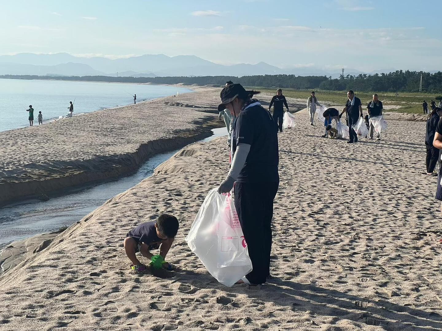 早朝より多くの協力業者やそのご家族が参加して、美保展望駐車場近辺の海岸をきれいにしています。